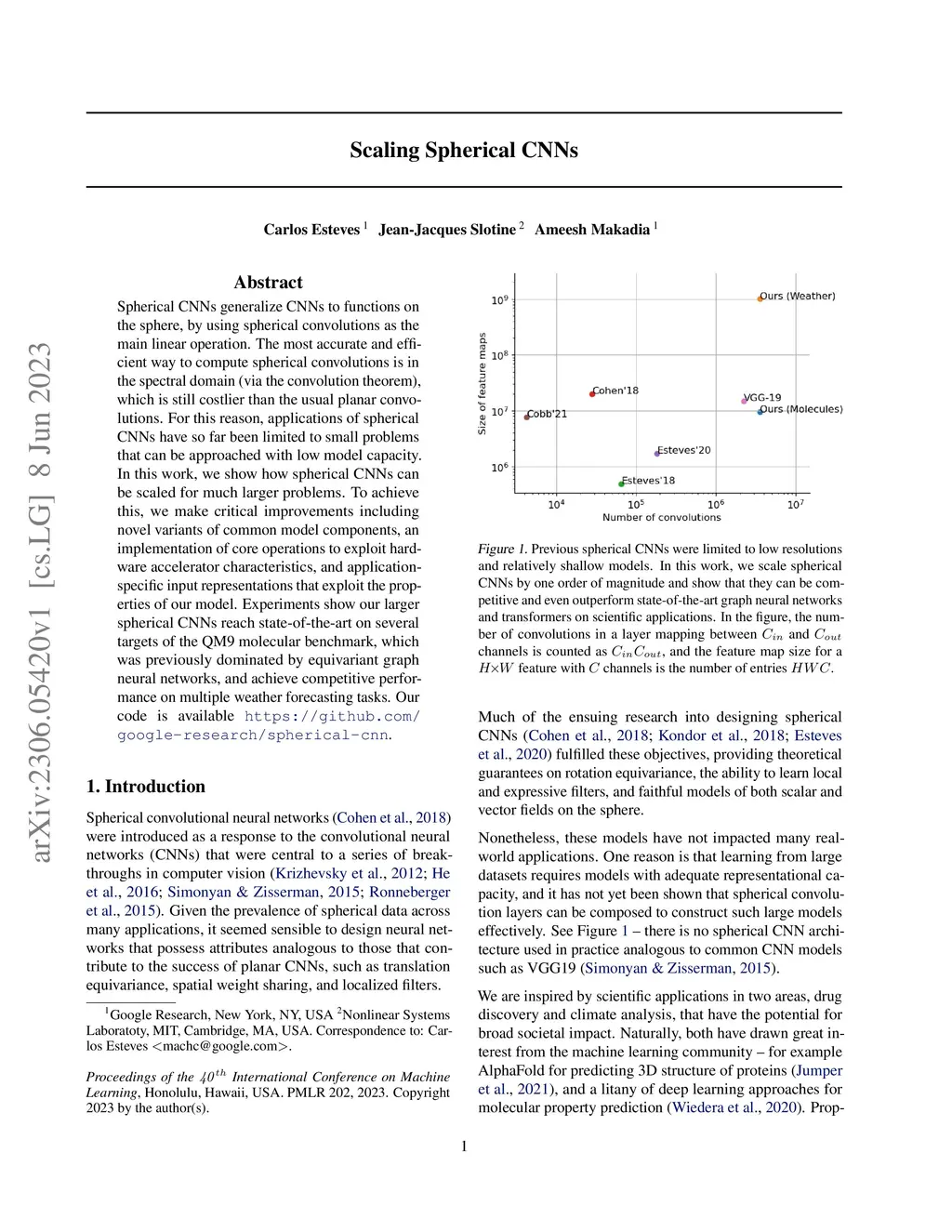 Spherical CNNs generalize CNNs to functions on the sphere, by using spherical convolutions as the main linear operation. The most accurate and efficient way to compute spherical convolutions is in the spectral domain (via the convolution theorem), which is still costlier than the usual planar convolutions. For this reason, applications of spherical CNNs have so far been limited to small problems that can be approached with low model capacity. In this work, we show how spherical CNNs can be scaled for much larger problems. To achieve this, we make critical improvements including novel variants of common model components, an implementation of core operations to exploit hardware accelerator characteristics, and application-specific input representations that exploit the properties of our model. Experiments show our larger spherical CNNs reach state-of-the-art on several targets of the QM9 molecular benchmark, which was previously dominated by equivariant graph neural networks, and achieve competitive performance on multiple weather forecasting tasks. Our code is available at https://github.com/google-research/spherical-cnn.