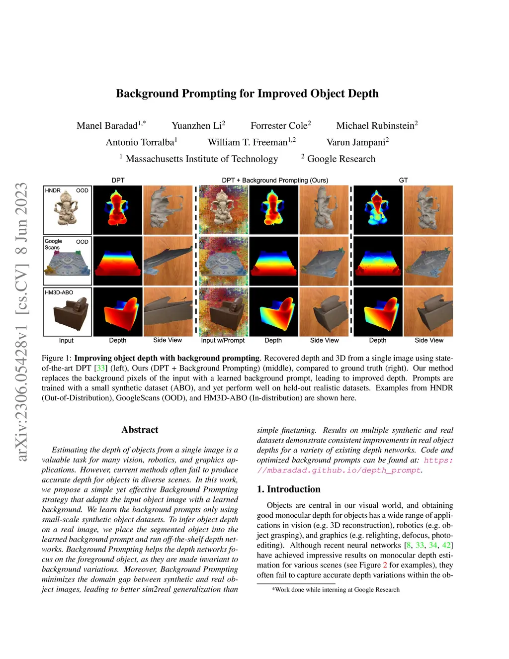 Background Prompting for Improved Object Depth