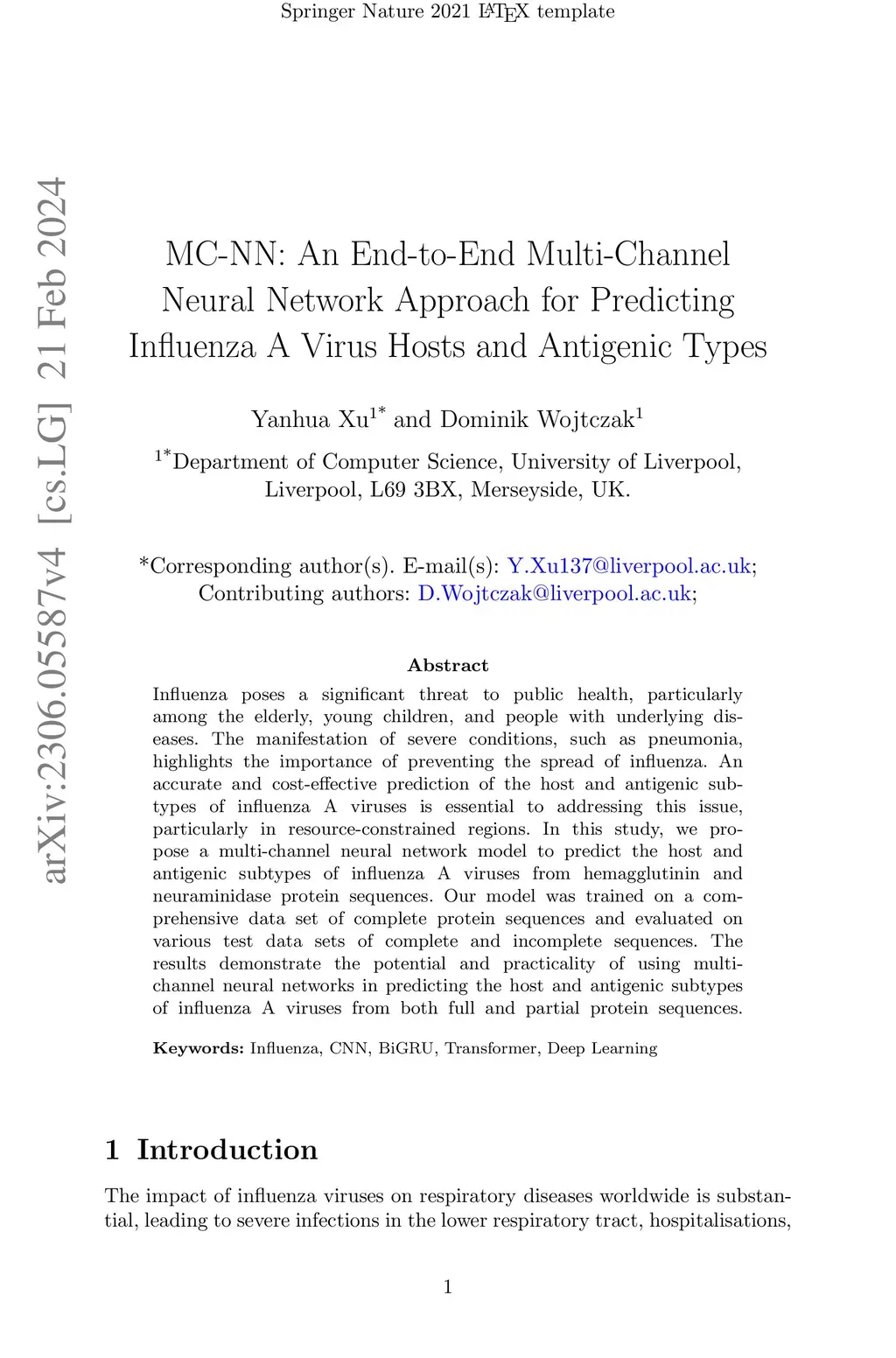 Influenza poses a significant threat to public health, particularly among the elderly, young children, and people with underlying dis-eases. The manifestation of severe conditions, such as pneumonia, highlights the importance of preventing the spread of influenza. An accurate and cost-effective prediction of the host and antigenic sub-types of influenza A viruses is essential to addressing this issue, particularly in resource-constrained regions. In this study, we propose a multi-channel neural network model to predict the host and antigenic subtypes of influenza A viruses from hemagglutinin and neuraminidase protein sequences. Our model was trained on a comprehensive data set of complete protein sequences and evaluated on various test data sets of complete and incomplete sequences. The results demonstrate the potential and practicality of using multi-channel neural networks in predicting the host and antigenic subtypes of influenza A viruses from both full and partial protein sequences.