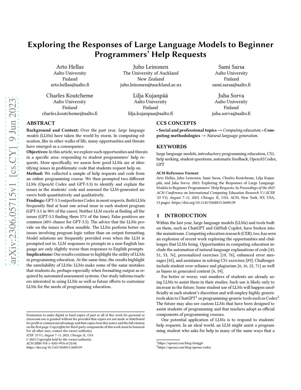 Background and Context: Over the past year, large language models (LLMs) have taken the world by storm. In computing education, like in other walks of life, many opportunities and threats have emerged as a consequence. Objectives: In this article, we explore such opportunities and threats in a specific area: responding to student programmers' help requests. More specifically, we assess how good LLMs are at identifying issues in problematic code that students request help on. Method: We collected a sample of help requests and code from an online programming course. We then prompted two different LLMs (OpenAI Codex and GPT-3.5) to identify and explain the issues in the students' code and assessed the LLM-generated answers both quantitatively and qualitatively. Findings: GPT-3.5 outperforms Codex in most respects. Both LLMs frequently find at least one actual issue in each student program (GPT-3.5 in 90% of the cases). Neither LLM excels at finding all the issues (GPT-3.5 finding them 57% of the time). False positives are common (40% chance for GPT-3.5). The advice that the LLMs provide on the issues is often sensible. The LLMs perform better on issues involving program logic rather than on output formatting. Model solutions are frequently provided even when the LLM is prompted not to. LLM responses to prompts in a non-English language are only slightly worse than responses to English prompts. Implications: Our results continue to highlight the utility of LLMs in programming education. At the same time, the results highlight the unreliability of LLMs: LLMs make some of the same mistakes that students do, perhaps especially when formatting output as required by automated assessment systems. Our study informs teachers interested in using LLMs as well as future efforts to customize LLMs for the needs of programming education.