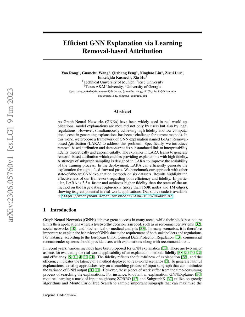 As Graph Neural Networks (GNNs) have been widely used in real-world applications, model explanations are required not only by users but also by legal regulations. However, simultaneously achieving high fidelity and low computational costs in generating explanations has been a challenge for current methods. In this work, we propose a framework of GNN explanation named LeArn Removal-based Attribution (LARA) to address this problem. Specifically, we introduce removal-based attribution and demonstrate its substantiated link to interpretability fidelity theoretically and experimentally. The explainer in LARA learns to generate removal-based attribution which enables providing explanations with high fidelity. A strategy of subgraph sampling is designed in LARA to improve the scalability of the training process. In the deployment, LARA can efficiently generate the explanation through a feed-forward pass. We benchmark our approach with other state-of-the-art GNN explanation methods on six datasets. Results highlight the effectiveness of our framework regarding both efficiency and fidelity. In particular, LARA is 3.5 times faster and achieves higher fidelity than the state-of-the-art method on the large dataset ogbn-arxiv (more than 160K nodes and 1M edges), showing its great potential in real-world applications. Our source code is available at https://anonymous.4open.science/r/LARA-10D8/README.md.