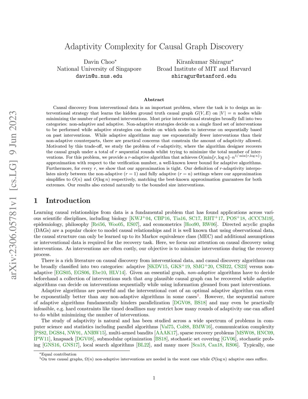 Causal discovery from interventional data is an important problem, where the task is to design an interventional strategy that learns the hidden ground truth causal graph on nodes while minimizing the number of performed interventions. Most prior interventional strategies broadly fall into two categories: non-adaptive and adaptive. Non-adaptive strategies decide on a single fixed set of interventions to be performed while adaptive strategies can decide on which nodes to intervene on sequentially based on past interventions. While adaptive algorithms may use exponentially fewer interventions than their non-adaptive counterparts, there are practical concerns that constrain the amount of adaptivity allowed. Motivated by this trade-off, we study the problem of -adaptivity, where the algorithm designer recovers the causal graph under a total of sequential rounds whilst trying to minimize the total number of interventions. For this problem, we provide a -adaptive algorithm that achieves approximation with respect to the verification number, a well-known lower bound for adaptive algorithms. Furthermore, for every , we show that our approximation is tight. Our definition of -adaptivity interpolates nicely between the non-adaptive () and fully adaptive () settings where our approximation simplifies to and respectively, matching the best-known approximation guarantees for both extremes. Our results also extend naturally to the bounded size interventions.