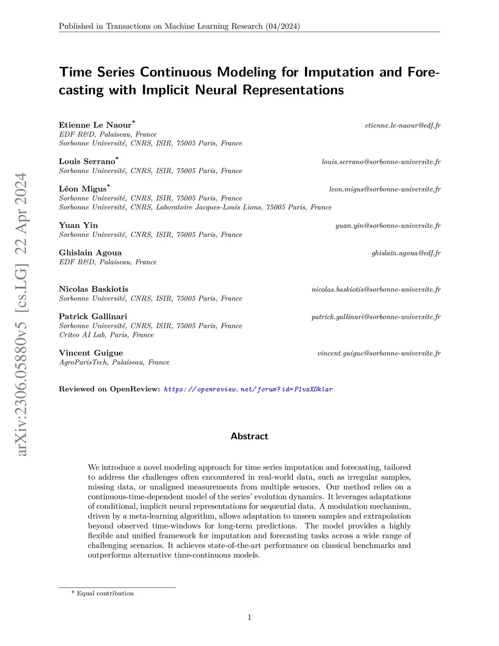 Time Series Continuous Modeling for Imputation and Forecasting with