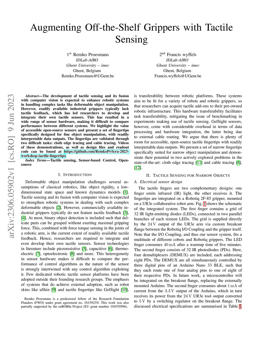 The development of tactile sensing and its fusion with computer vision is expected to enhance robotic systems in handling complex tasks like deformable object manipulation. However, readily available industrial grippers typically lack tactile feedback, which has led researchers to develop and integrate their own tactile sensors. This has resulted in a wide range of sensor hardware, making it difficult to compare performance between different systems. We highlight the value of accessible open-source sensors and present a set of fingertips specifically designed for fine object manipulation, with readily interpretable data outputs. The fingertips are validated through two difficult tasks: cloth edge tracing and cable tracing. Videos of these demonstrations, as well as design files and readout code can be found at https://github.com/RemkoPr/icra-2023-workshop-tactile-fingertips.