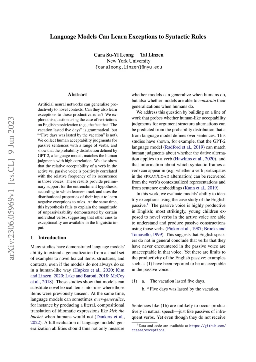 Language Models Can Learn Exceptions to Syntactic Rules