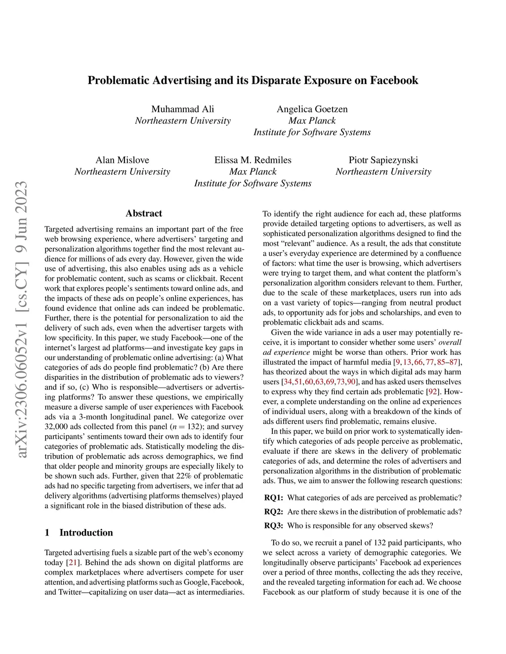 Targeted advertising remains an important part of the free web browsing experience, where advertisers' targeting and personalization algorithms together find the most relevant audience for millions of ads every day. However, given the wide use of advertising, this also enables using ads as a vehicle for problematic content, such as scams or clickbait. Recent work that explores people's sentiments toward online ads, and the impacts of these ads on people's online experiences, has found evidence that online ads can indeed be problematic. Further, there is the potential for personalization to aid the delivery of such ads, even when the advertiser targets with low specificity. In this paper, we study Facebook -- one of the internet's largest ad platforms -- and investigate key gaps in our understanding of problematic online advertising: (a) What categories of ads do people find problematic? (b) Are there disparities in the distribution of problematic ads to viewers? and if so, (c) Who is responsible -- advertisers or advertising platforms? To answer these questions, we empirically measure a diverse sample of user experiences with Facebook ads via a 3-month longitudinal panel. We categorize over 32,000 ads collected from this panel (); and survey participants' sentiments toward their own ads to identify four categories of problematic ads. Statistically modeling the distribution of problematic ads across demographics, we find that older people and minority groups are especially likely to be shown such ads. Further, given that 22% of problematic ads had no specific targeting from advertisers, we infer that ad delivery algorithms (advertising platforms themselves) played a significant role in the biased distribution of these ads.