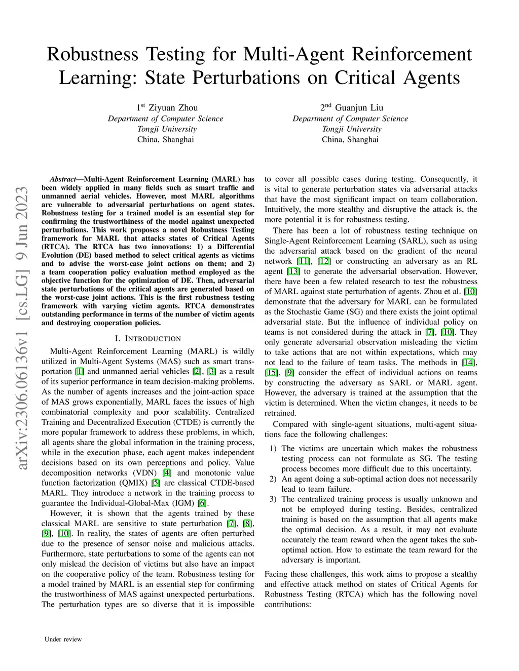Multi-Agent Reinforcement Learning (MARL) has been widely applied in many fields such as smart traffic and unmanned aerial vehicles. However, most MARL algorithms are vulnerable to adversarial perturbations on agent states. Robustness testing for a trained model is an essential step for confirming the trustworthiness of the model against unexpected perturbations. This work proposes a novel Robustness Testing framework for MARL that attacks states of Critical Agents (RTCA). The RTCA has two innovations: 1) a Differential Evolution (DE) based method to select critical agents as victims and to advise the worst-case joint actions on them; and 2) a team cooperation policy evaluation method employed as the objective function for the optimization of DE. Then, adversarial state perturbations of the critical agents are generated based on the worst-case joint actions. This is the first robustness testing framework with varying victim agents. RTCA demonstrates outstanding performance in terms of the number of victim agents and destroying cooperation policies.