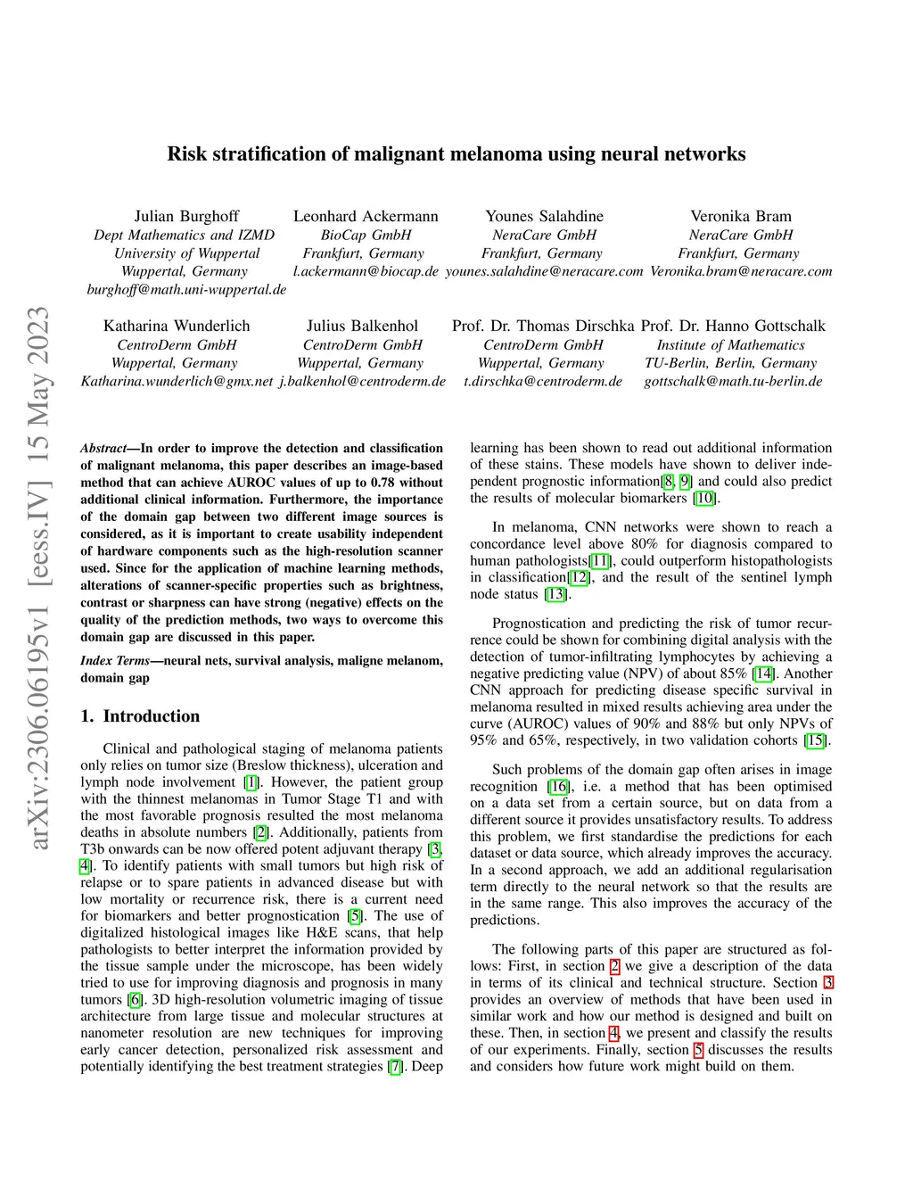 Risk stratification of malignant melanoma using neural networks