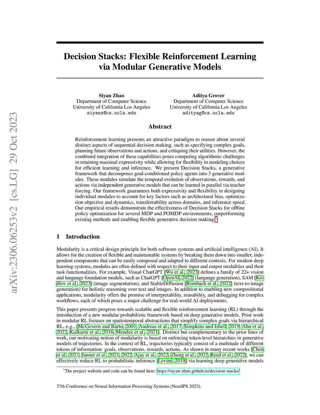 Decision Stacks: Flexible Reinforcement Learning via Modular Generative