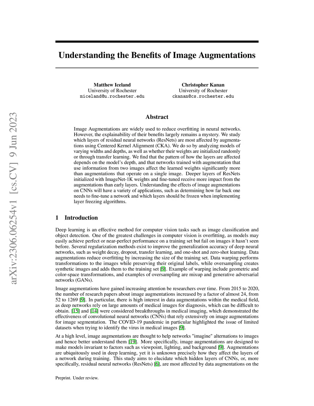 Image Augmentations are widely used to reduce overfitting in neural networks. However, the explainability of their benefits largely remains a mystery. We study which layers of residual neural networks (ResNets) are most affected by augmentations using Centered Kernel Alignment (CKA). We do so by analyzing models of varying widths and depths, as well as whether their weights are initialized randomly or through transfer learning. We find that the pattern of how the layers are affected depends on the model's depth, and that networks trained with augmentation that use information from two images affect the learned weights significantly more than augmentations that operate on a single image. Deeper layers of ResNets initialized with ImageNet-1K weights and fine-tuned receive more impact from the augmentations than early layers. Understanding the effects of image augmentations on CNNs will have a variety of applications, such as determining how far back one needs to fine-tune a network and which layers should be frozen when implementing layer freezing algorithms.