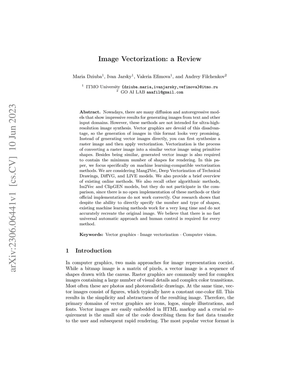 Image Vectorization: a Review