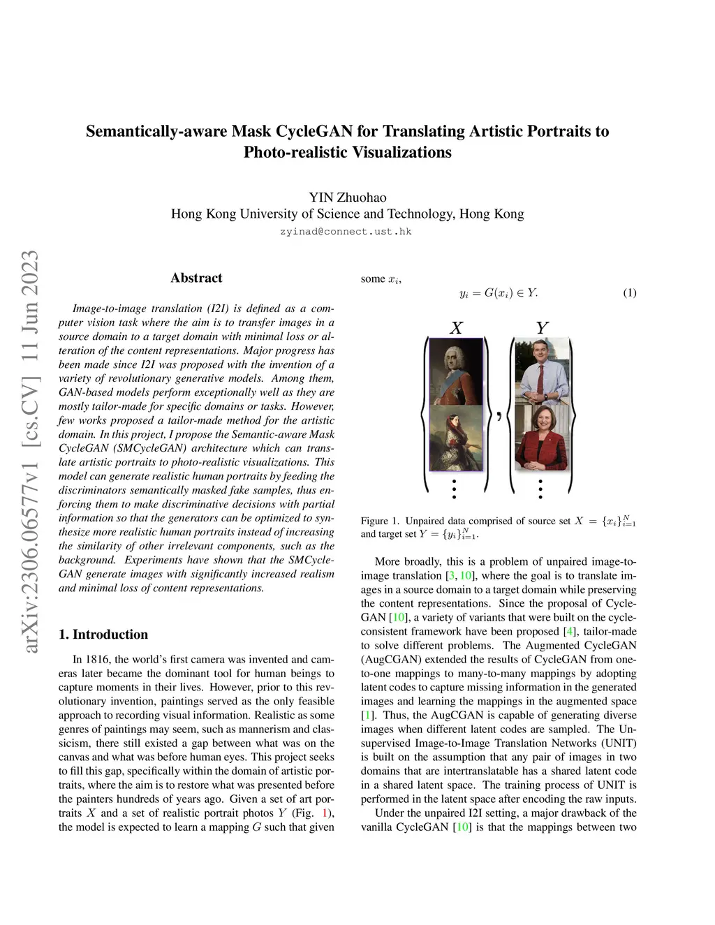 Semantically-aware Mask CycleGAN for Translating Artistic Portraits to