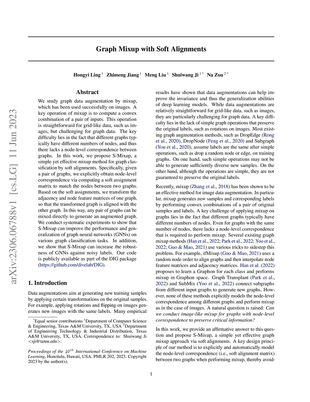 Graph Mixup with Soft Alignments