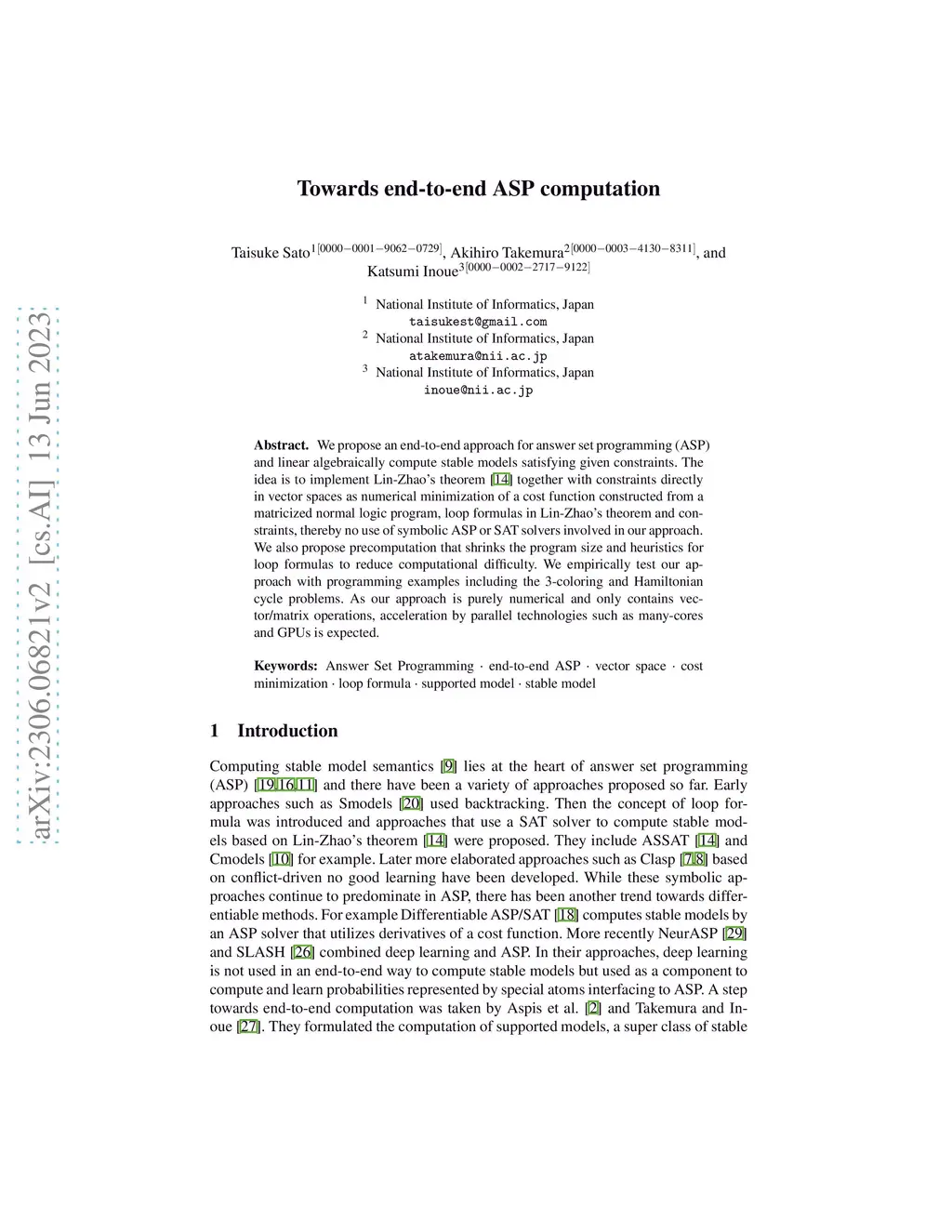 Towards end-to-end ASP computation