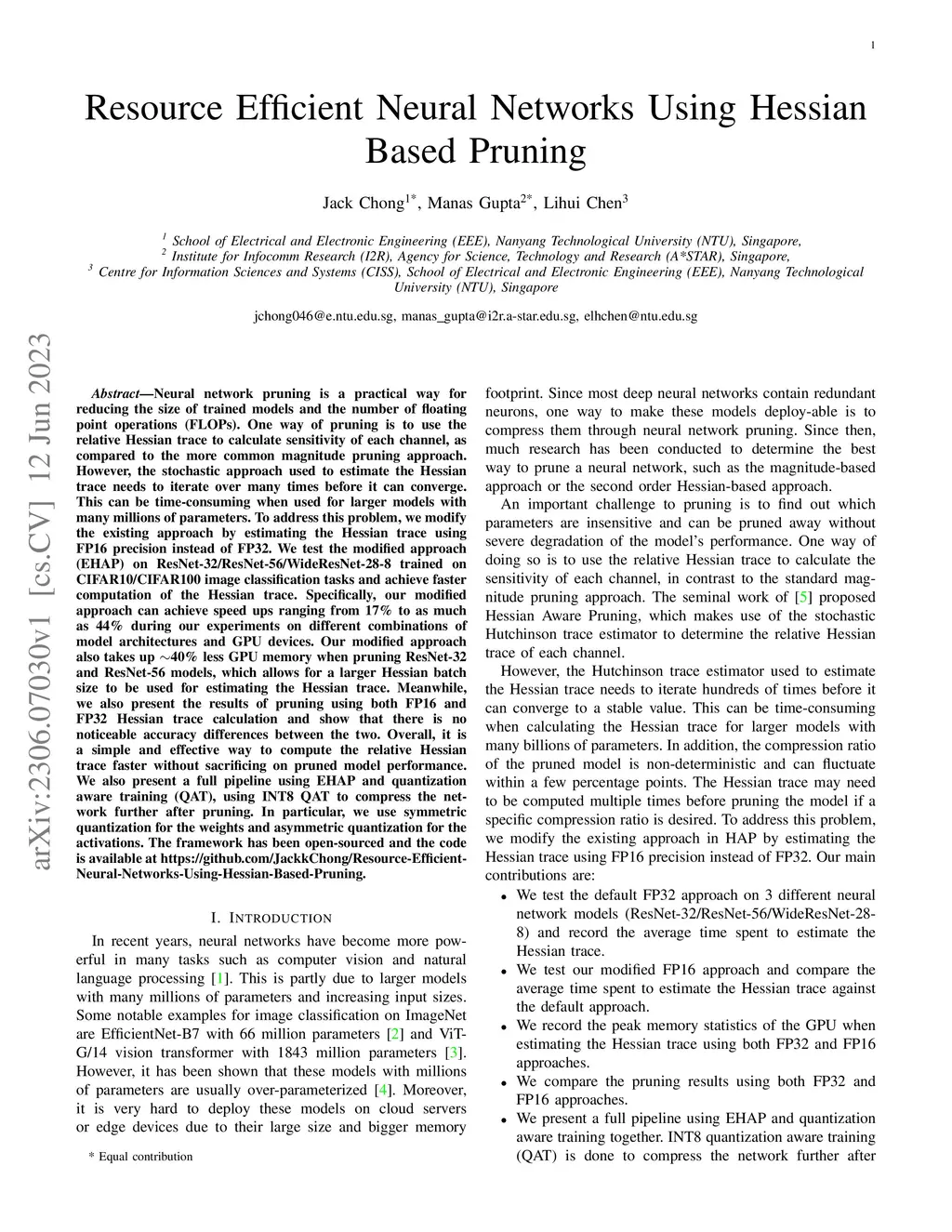 Resource Efficient Neural Networks Using Hessian Based Pruning