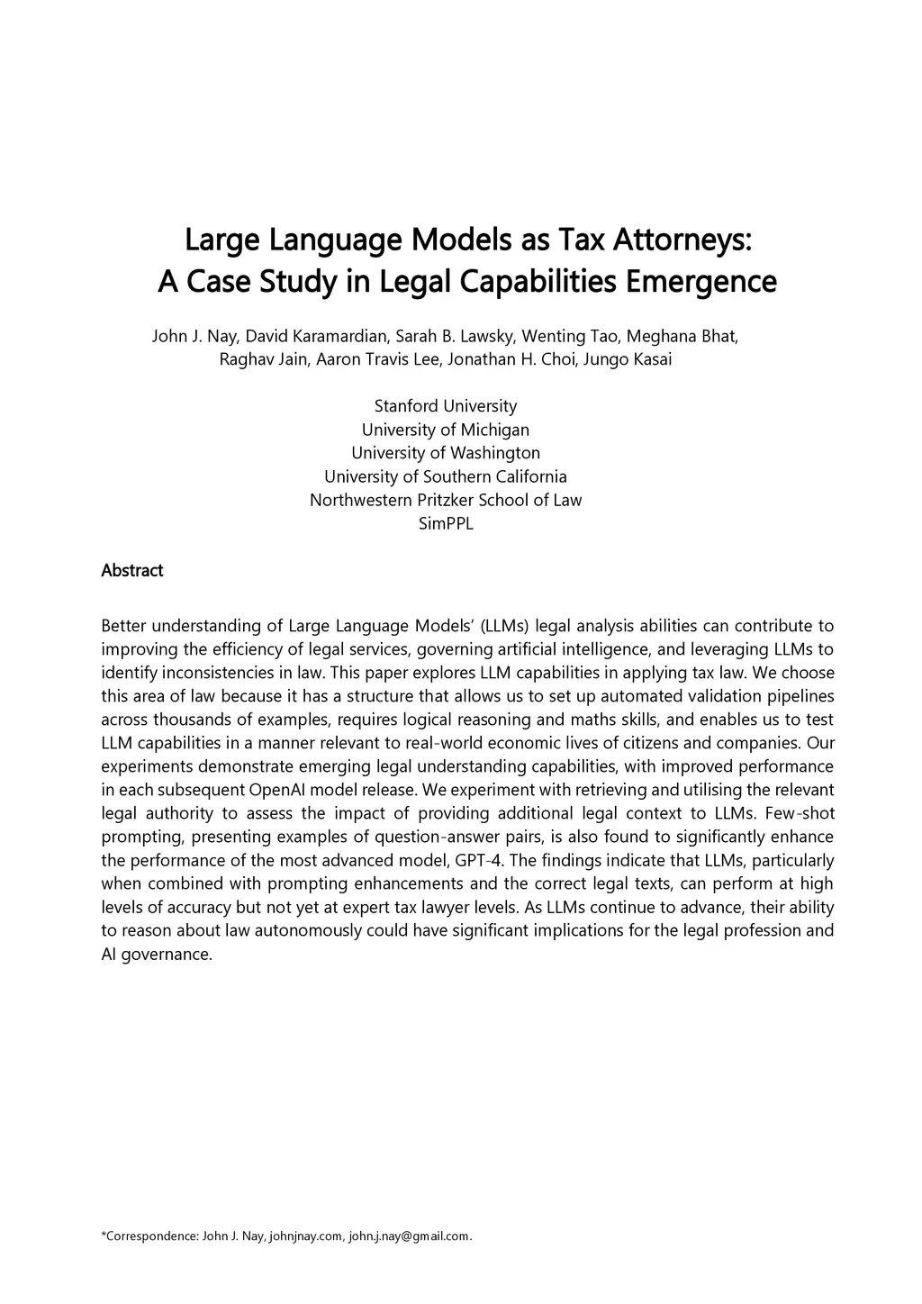 Large Language Models as Tax Attorneys: A Case Study in Legal
