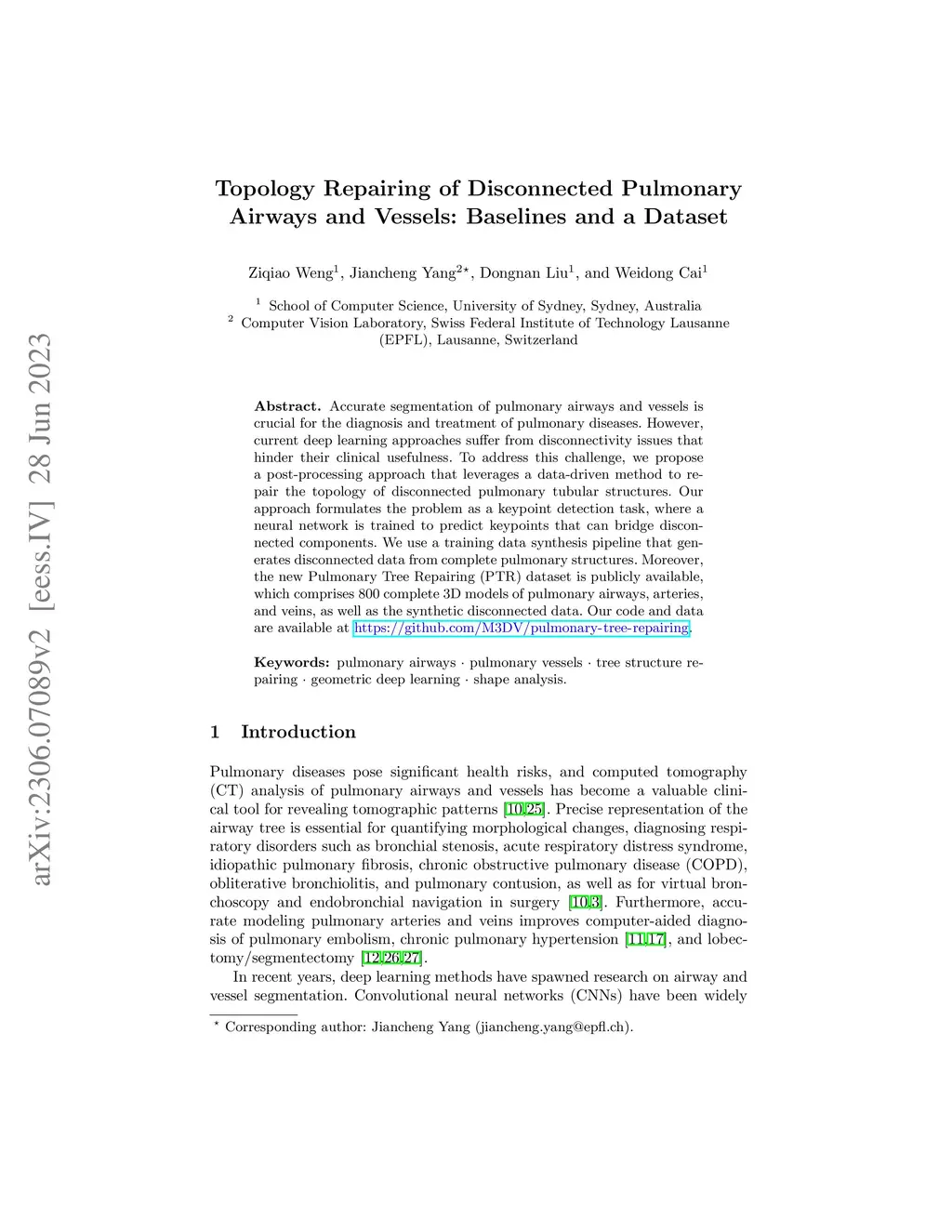 Topology Repairing of Disconnected Pulmonary Airways and Vessels: