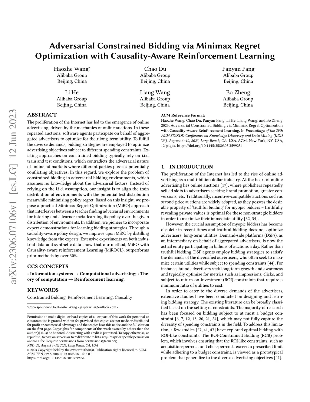 The proliferation of the Internet has led to the emergence of online advertising, driven by the mechanics of online auctions. In these repeated auctions, software agents participate on behalf of aggregated advertisers to optimize for their long-term utility. To fulfill the diverse demands, bidding strategies are employed to optimize advertising objectives subject to different spending constraints. Existing approaches on constrained bidding typically rely on i.i.d. train and test conditions, which contradicts the adversarial nature of online ad markets where different parties possess potentially conflicting objectives. In this regard, we explore the problem of constrained bidding in adversarial bidding environments, which assumes no knowledge about the adversarial factors. Instead of relying on the i.i.d. assumption, our insight is to align the train distribution of environments with the potential test distribution meanwhile minimizing policy regret. Based on this insight, we propose a practical Minimax Regret Optimization (MiRO) approach that interleaves between a teacher finding adversarial environments for tutoring and a learner meta-learning its policy over the given distribution of environments. In addition, we pioneer to incorporate expert demonstrations for learning bidding strategies. Through a causality-aware policy design, we improve upon MiRO by distilling knowledge from the experts. Extensive experiments on both industrial data and synthetic data show that our method, MiRO with Causality-aware reinforcement Learning (MiROCL), outperforms prior methods by over 30%.