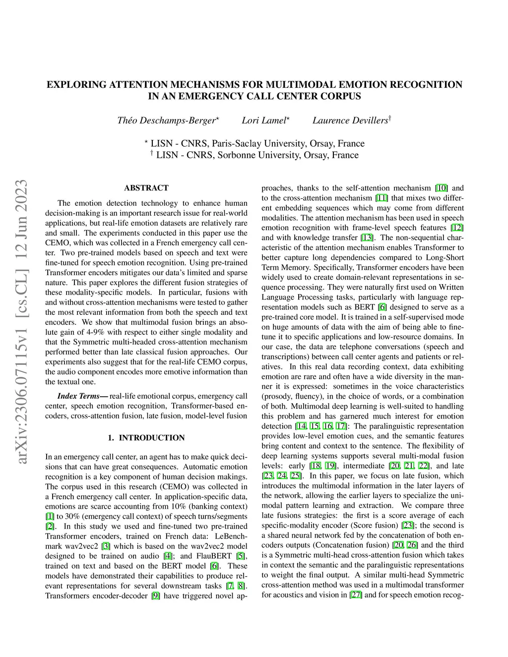 Exploring Attention Mechanisms for Multimodal Emotion Recognition in an