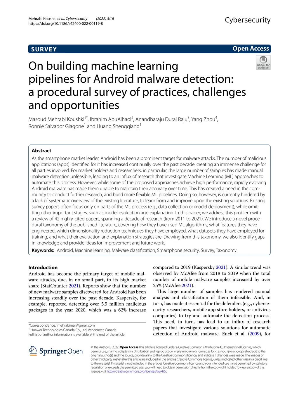 As the smartphone market leader, Android has been a prominent target for malware attacks. The number of malicious applications (apps) identified for it has increased continually over the past decade, creating an immense challenge for all parties involved. For market holders and researchers, in particular, the large number of samples has made manual malware detection unfeasible, leading to an influx of research that investigate Machine Learning (ML) approaches to automate this process. However, while some of the proposed approaches achieve high performance, rapidly evolving Android malware has made them unable to maintain their accuracy over time. This has created a need in the community to conduct further research, and build more flexible ML pipelines. Doing so, however, is currently hindered by a lack of systematic overview of the existing literature, to learn from and improve upon the existing solutions. Existing survey papers often focus only on parts of the ML process (e.g., data collection or model deployment), while omitting other important stages, such as model evaluation and explanation. In this paper, we address this problem with a review of 42 highly-cited papers, spanning a decade of research (from 2011 to 2021). We introduce a novel procedural taxonomy of the published literature, covering how they have used ML algorithms, what features they have engineered, which dimensionality reduction techniques they have employed, what datasets they have employed for training, and what their evaluation and explanation strategies are. Drawing from this taxonomy, we also identify gaps in knowledge and provide ideas for improvement and future work.