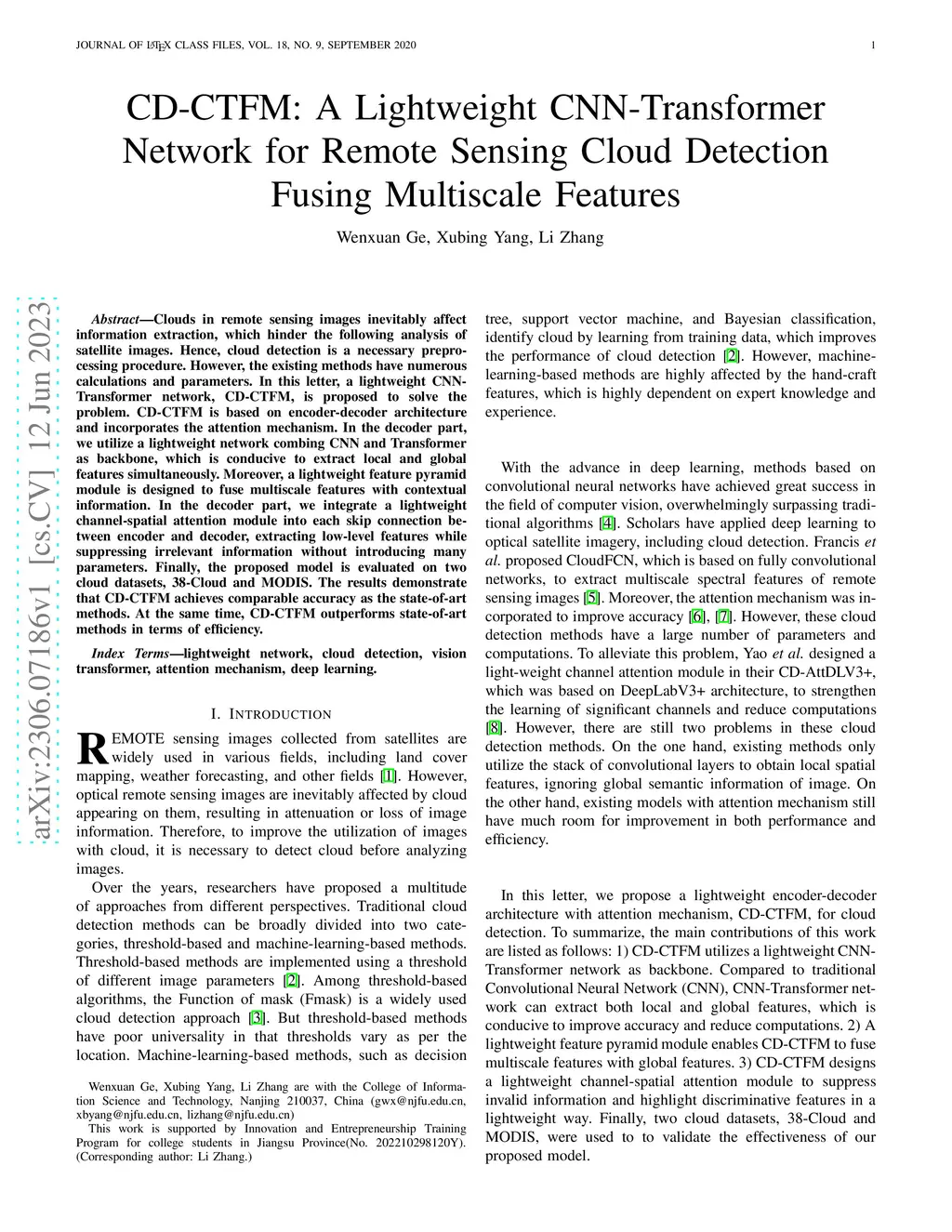CD-CTFM: A Lightweight CNN-Transformer Network for Remote Sensing Cloud