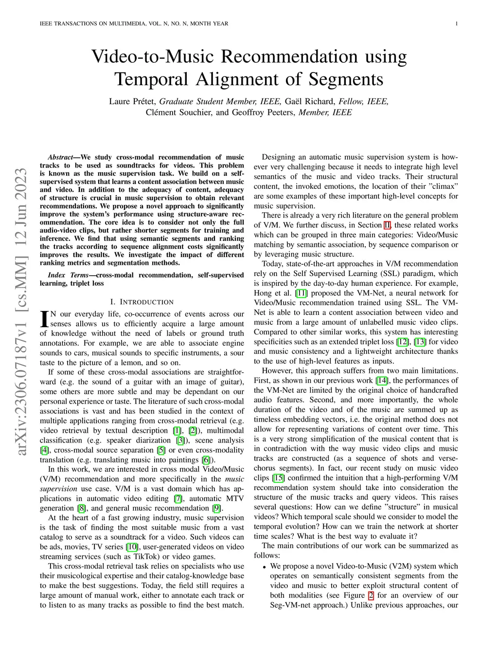 Video-to-Music Recommendation using Temporal Alignment of Segments
