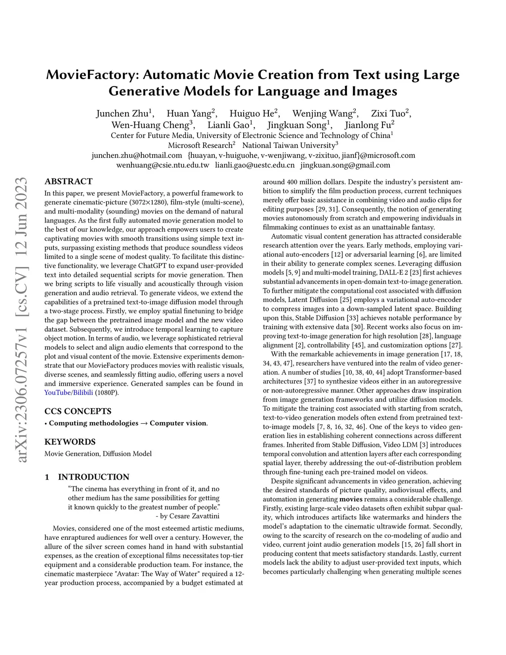 MovieFactory: Automatic Movie Creation from Text using Large Generative