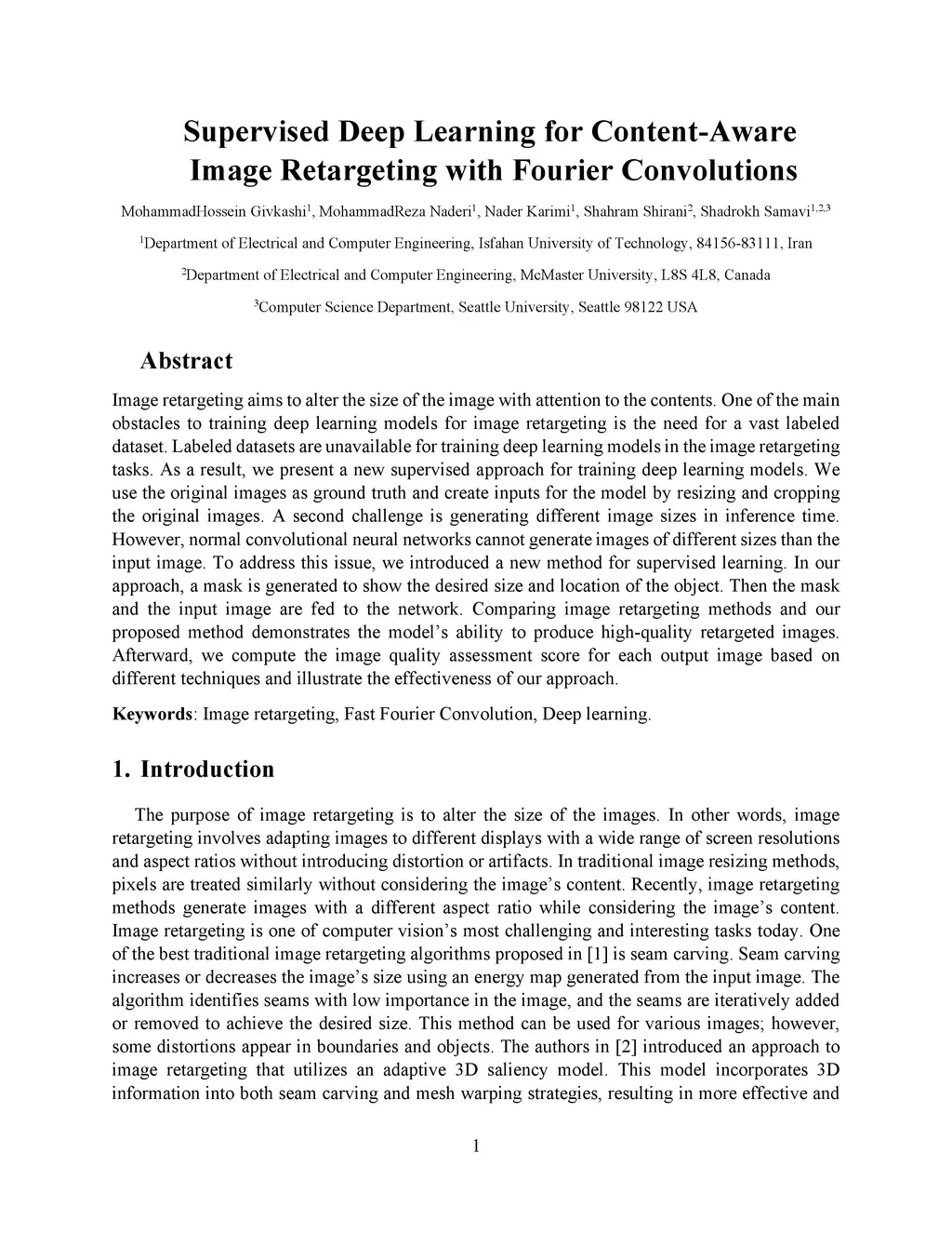 Image retargeting aims to alter the size of the image with attention to the contents. One of the main obstacles to training deep learning models for image retargeting is the need for a vast labeled dataset. Labeled datasets are unavailable for training deep learning models in the image retargeting tasks. As a result, we present a new supervised approach for training deep learning models. We use the original images as ground truth and create inputs for the model by resizing and cropping the original images. A second challenge is generating different image sizes in inference time. However, regular convolutional neural networks cannot generate images of different sizes than the input image. To address this issue, we introduced a new method for supervised learning. In our approach, a mask is generated to show the desired size and location of the object. Then the mask and the input image are fed to the network. Comparing image retargeting methods and our proposed method demonstrates the model's ability to produce high-quality retargeted images. Afterward, we compute the image quality assessment score for each output image based on different techniques and illustrate the effectiveness of our approach.