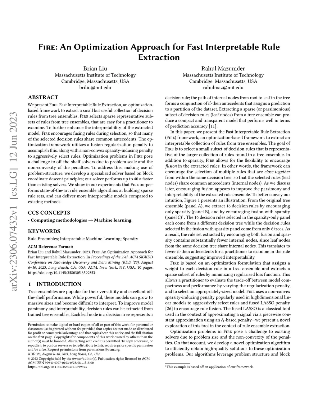 FIRE: An Optimization Approach for Fast Interpretable Rule Extraction