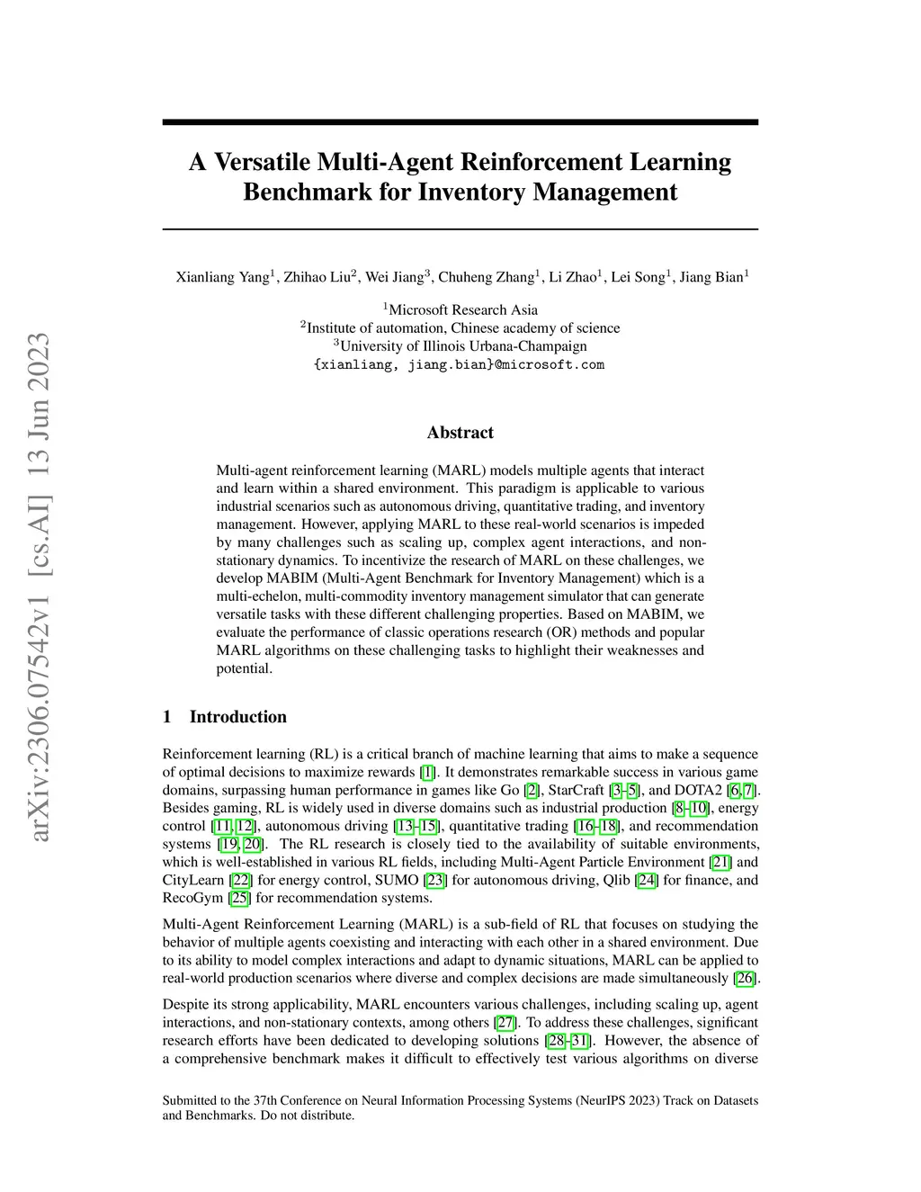 A Versatile Multi-Agent Reinforcement Learning Benchmark for Inventory