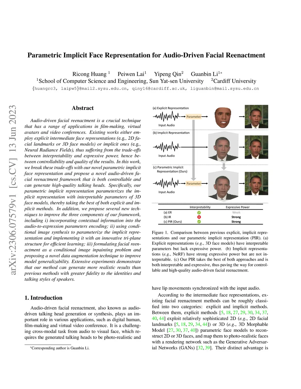 Parametric Implicit Face Representation for Audio-Driven Facial