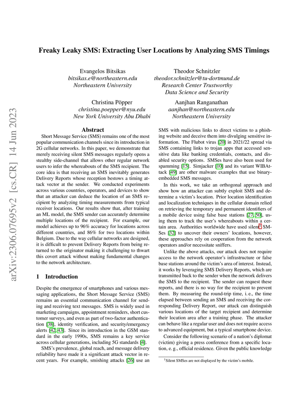 Freaky Leaky SMS: Extracting User Locations by Analyzing SMS Timings