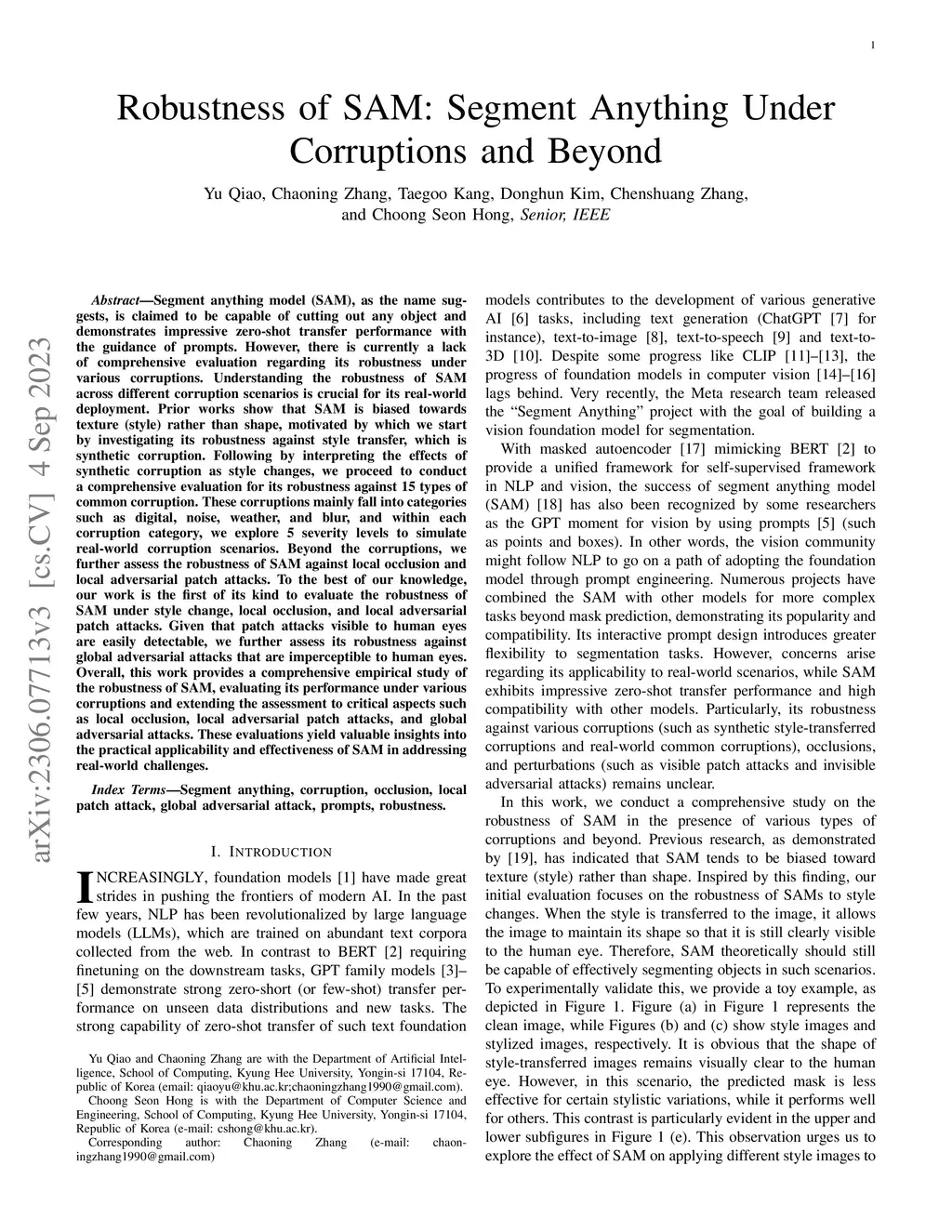 Segment anything model (SAM), as the name suggests, is claimed to be capable of cutting out any object and demonstrates impressive zero-shot transfer performance with the guidance of prompts. However, there is currently a lack of comprehensive evaluation regarding its robustness under various corruptions. Understanding the robustness of SAM across different corruption scenarios is crucial for its real-world deployment. Prior works show that SAM is biased towards texture (style) rather than shape, motivated by which we start by investigating its robustness against style transfer, which is synthetic corruption. Following by interpreting the effects of synthetic corruption as style changes, we proceed to conduct a comprehensive evaluation for its robustness against 15 types of common corruption. These corruptions mainly fall into categories such as digital, noise, weather, and blur, and within each corruption category, we explore 5 severity levels to simulate real-world corruption scenarios. Beyond the corruptions, we further assess the robustness of SAM against local occlusion and local adversarial patch attacks. To the best of our knowledge, our work is the first of its kind to evaluate the robustness of SAM under style change, local occlusion, and local adversarial patch attacks. Given that patch attacks visible to human eyes are easily detectable, we further assess its robustness against global adversarial attacks that are imperceptible to human eyes. Overall, this work provides a comprehensive empirical study of the robustness of SAM, evaluating its performance under various corruptions and extending the assessment to critical aspects such as local occlusion, local adversarial patch attacks, and global adversarial attacks. These evaluations yield valuable insights into the practical applicability and effectiveness of SAM in addressing real-world challenges.