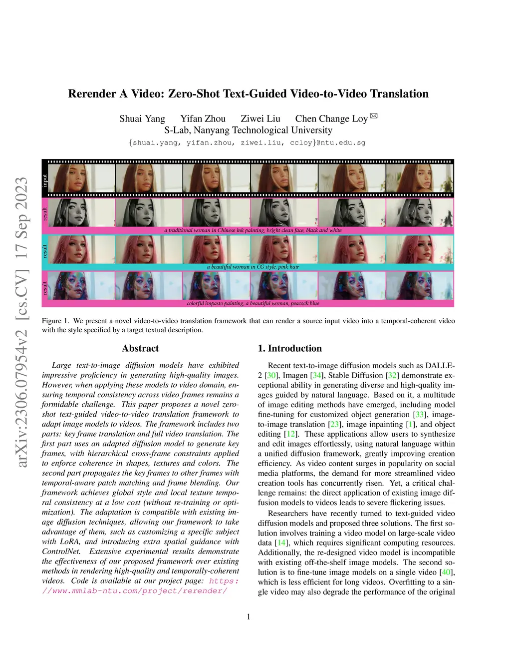 Rerender A Video: Zero-Shot Text-Guided Video-to-Video Translation