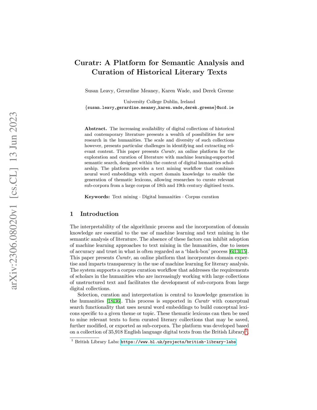 Curatr: A Platform for Semantic Analysis and Curation of Historical