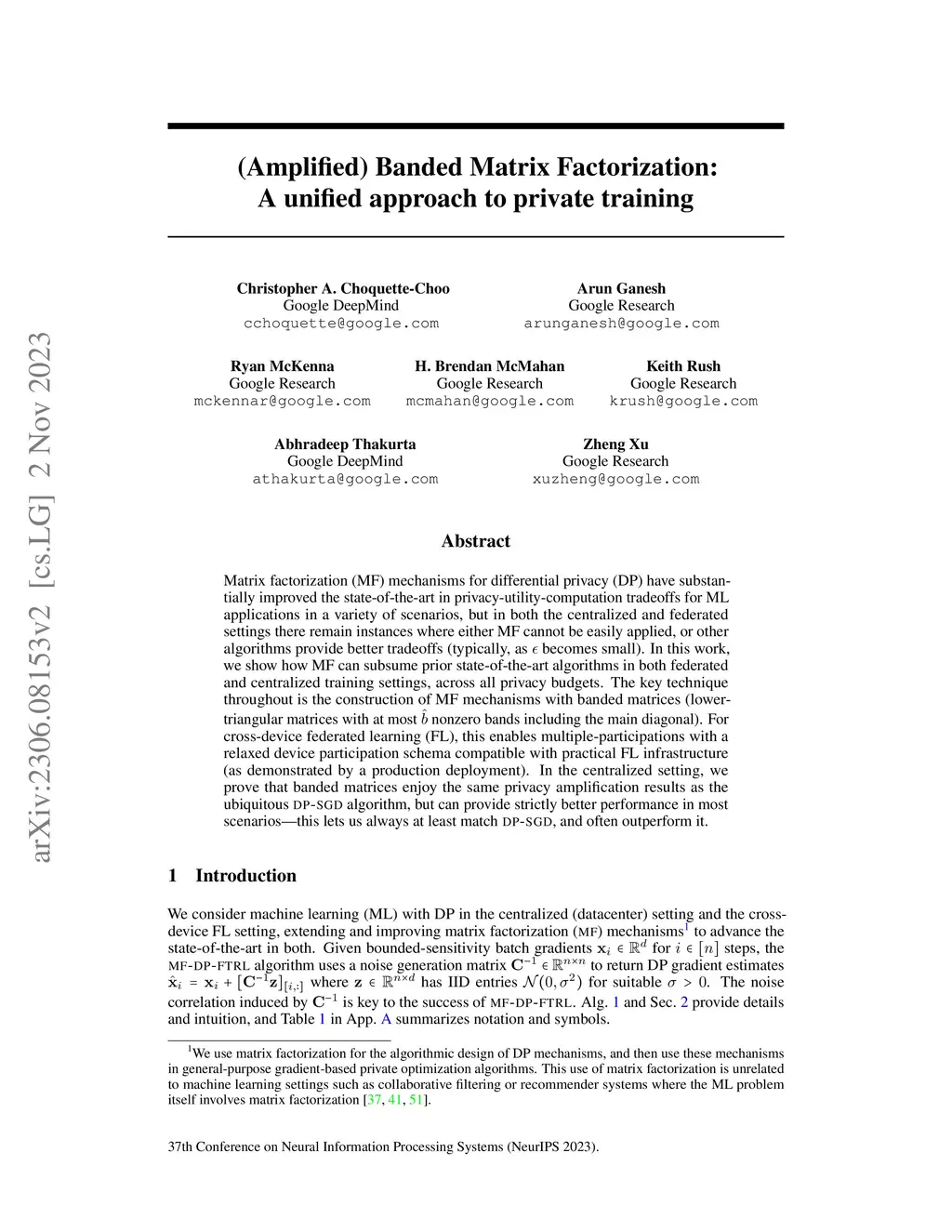 (Amplified) Banded Matrix Factorization: A unified approach to private