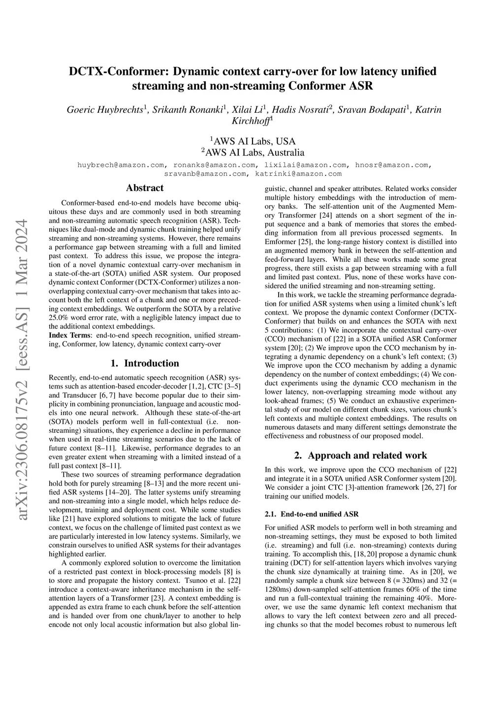 DCTX-Conformer: Dynamic context carry-over for low latency unified