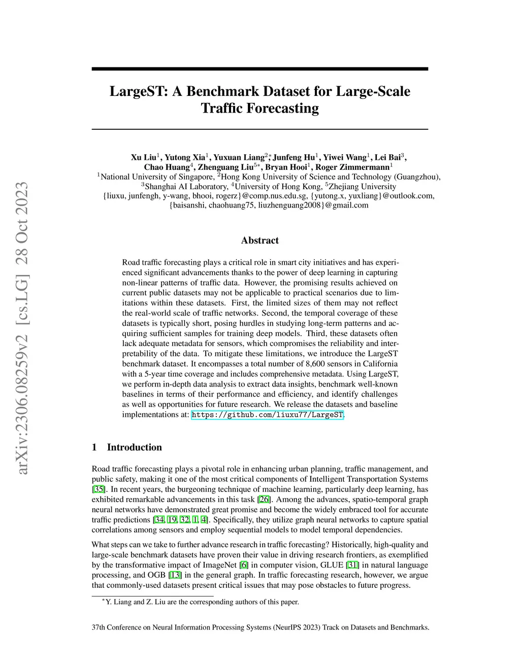LargeST: A Benchmark Dataset for Large-Scale Traffic Forecasting