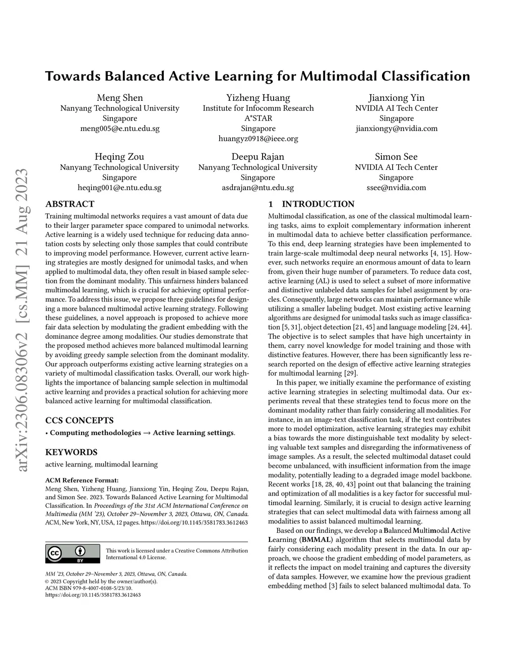 Training multimodal networks requires a vast amount of data due to their larger parameter space compared to unimodal networks. Active learning is a widely used technique for reducing data annotation costs by selecting only those samples that could contribute to improving model performance. However, current active learning strategies are mostly designed for unimodal tasks, and when applied to multimodal data, they often result in biased sample selection from the dominant modality. This unfairness hinders balanced multimodal learning, which is crucial for achieving optimal performance. To address this issue, we propose three guidelines for designing a more balanced multimodal active learning strategy. Following these guidelines, a novel approach is proposed to achieve more fair data selection by modulating the gradient embedding with the dominance degree among modalities. Our studies demonstrate that the proposed method achieves more balanced multimodal learning by avoiding greedy sample selection from the dominant modality. Our approach outperforms existing active learning strategies on a variety of multimodal classification tasks. Overall, our work highlights the importance of balancing sample selection in multimodal active learning and provides a practical solution for achieving more balanced active learning for multimodal classification.