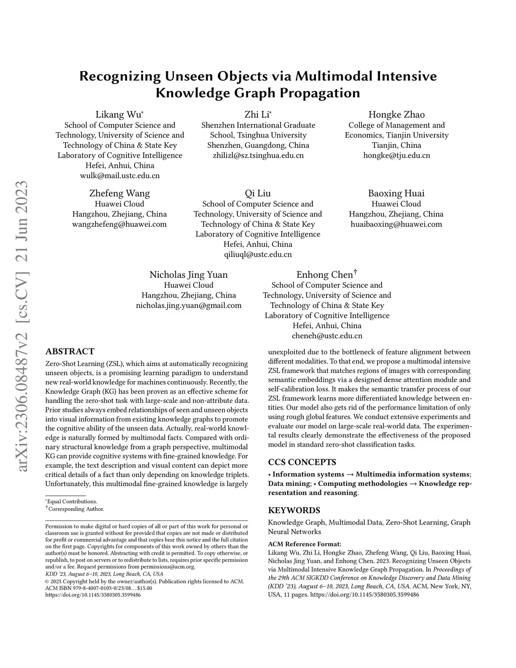 Recognizing Unseen Objects via Multimodal Intensive Knowledge Graph