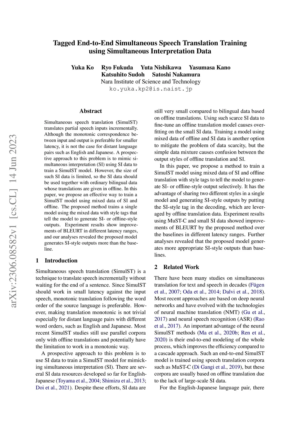Tagged End-to-End Simultaneous Speech Translation Training using