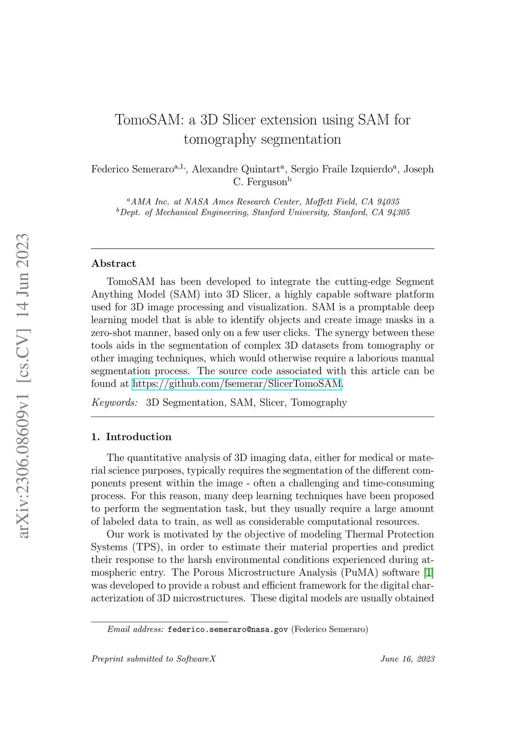 TomoSAM: a 3D Slicer extension using SAM for tomography segmentation