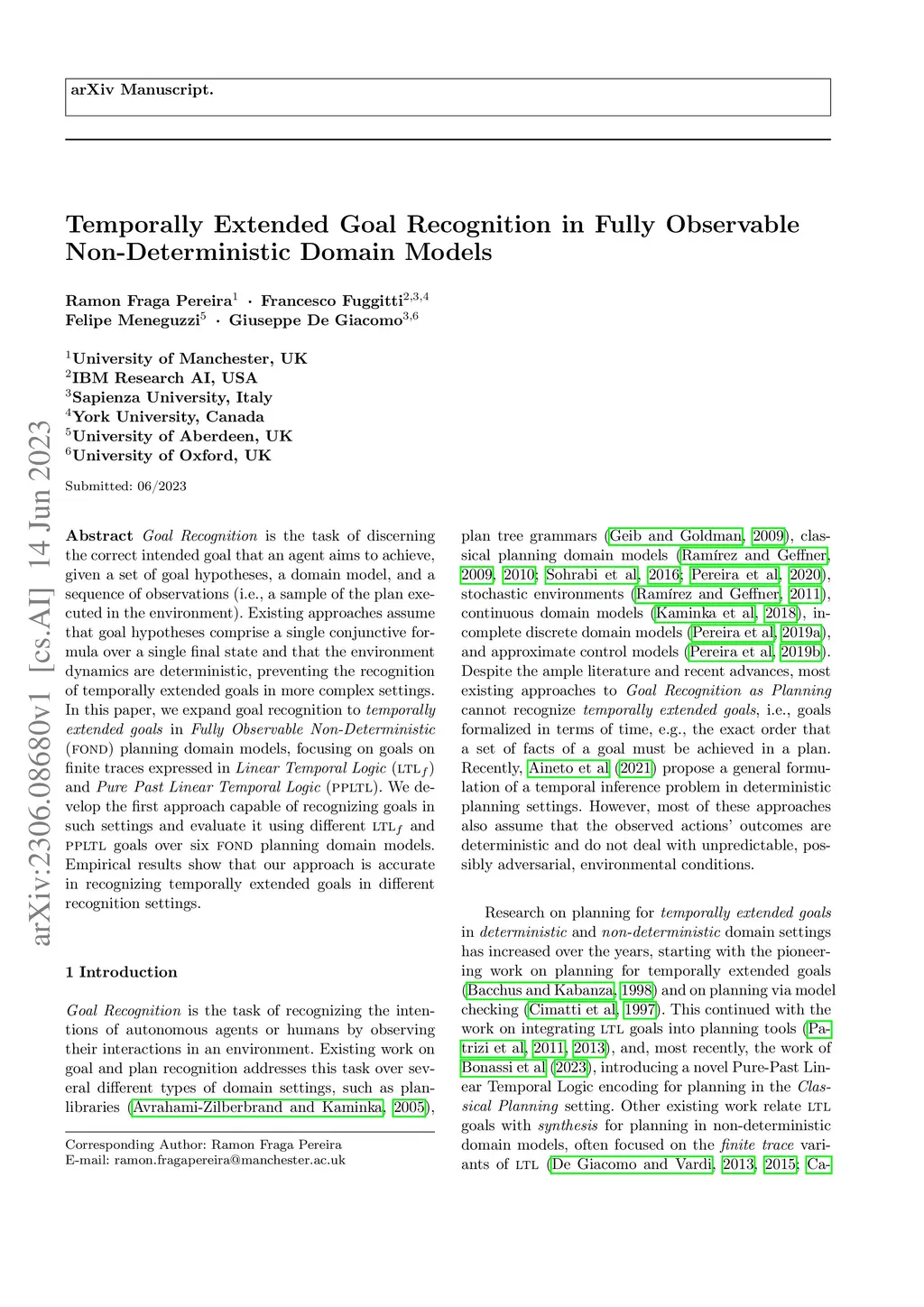 Goal Recognition is the task of discerning the correct intended goal that an agent aims to achieve, given a set of goal hypotheses, a domain model, and a sequence of observations (i.e., a sample of the plan executed in the environment). Existing approaches assume that goal hypotheses comprise a single conjunctive formula over a single final state and that the environment dynamics are deterministic, preventing the recognition of temporally extended goals in more complex settings. In this paper, we expand goal recognition to temporally extended goals in Fully Observable Non-Deterministic (FOND) planning domain models, focusing on goals on finite traces expressed in Linear Temporal Logic (LTLf) and Pure Past Linear Temporal Logic (PLTLf). We develop the first approach capable of recognizing goals in such settings and evaluate it using different LTLf and PLTLf goals over six FOND planning domain models. Empirical results show that our approach is accurate in recognizing temporally extended goals in different recognition settings.