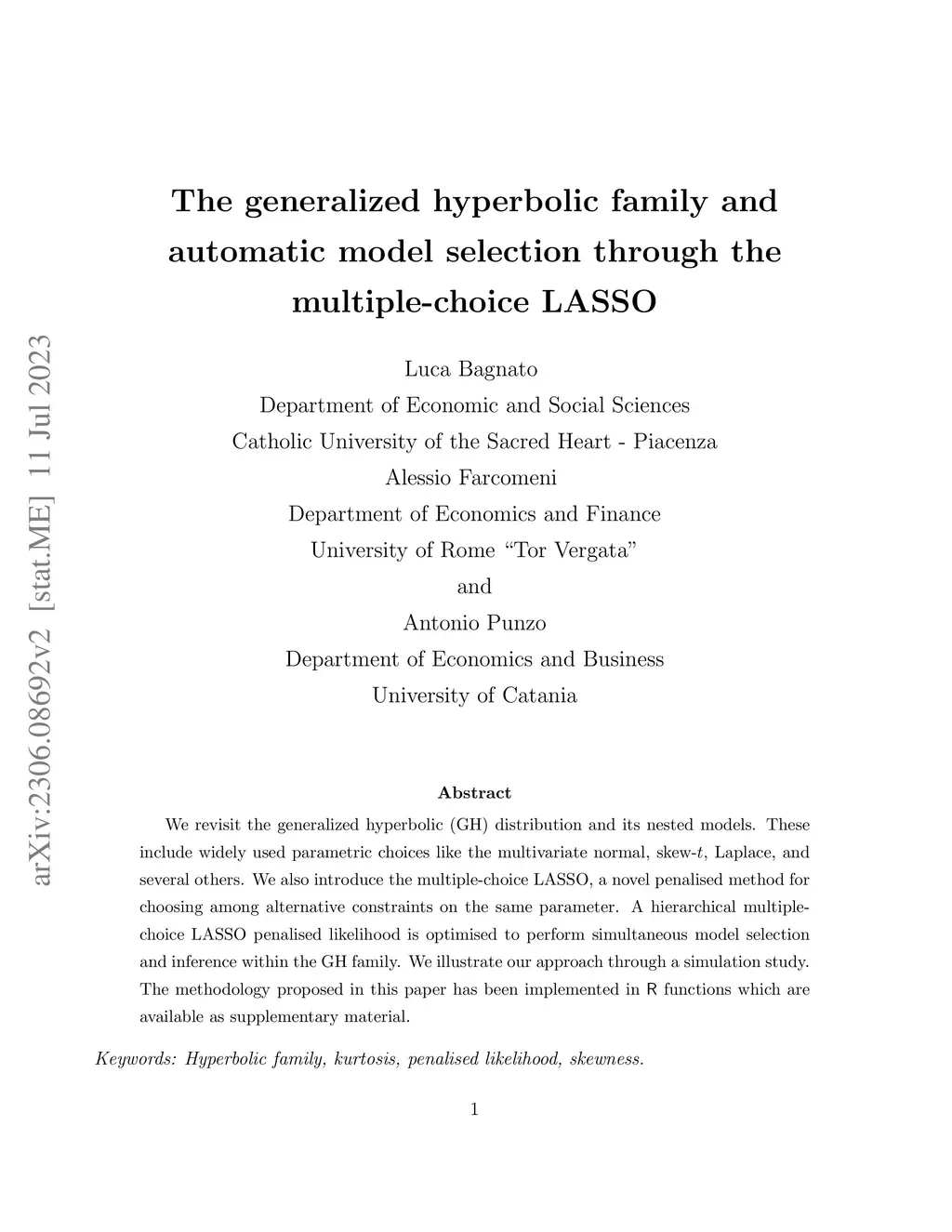 We revisit the generalized hyperbolic (GH) distribution and its nested models. These include widely used parametric choices like the multivariate normal, skew-t, Laplace, and several others. We also introduce the multiple-choice LASSO, a novel penalized method for choosing among alternative constraints on the same parameter. A hierarchical multiple-choice LASSO penalized likelihood is optimized to perform simultaneous model selection and inference within the GH family. We illustrate our approach through a simulation study and a real data example about pre-term infants. The methodology proposed in this paper has been implemented in R functions which are available as supplementary material.
