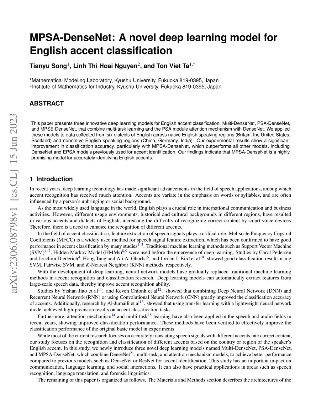 This paper presents three innovative deep learning models for English accent classification: Multi-DenseNet, PSA-DenseNet, and MPSE-DenseNet, that combine multi-task learning and the PSA module attention mechanism with DenseNet. We applied these models to data collected from six dialects of English across native English speaking regions (Britain, the United States, Scotland) and nonnative English speaking regions (China, Germany, India). Our experimental results show a significant improvement in classification accuracy, particularly with MPSA-DenseNet, which outperforms all other models, including DenseNet and EPSA models previously used for accent identification. Our findings indicate that MPSA-DenseNet is a highly promising model for accurately identifying English accents.