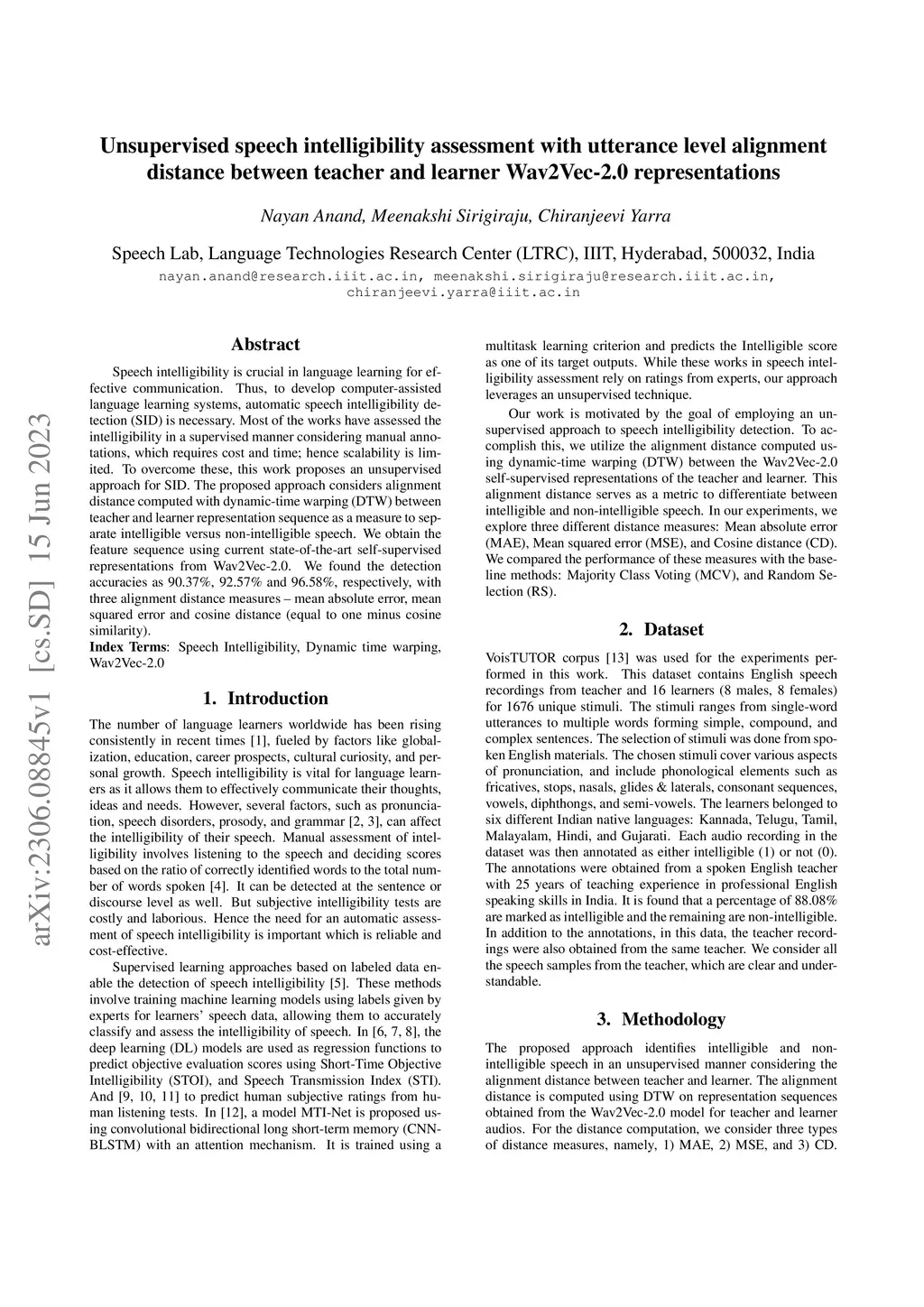 Unsupervised speech intelligibility assessment with utterance level