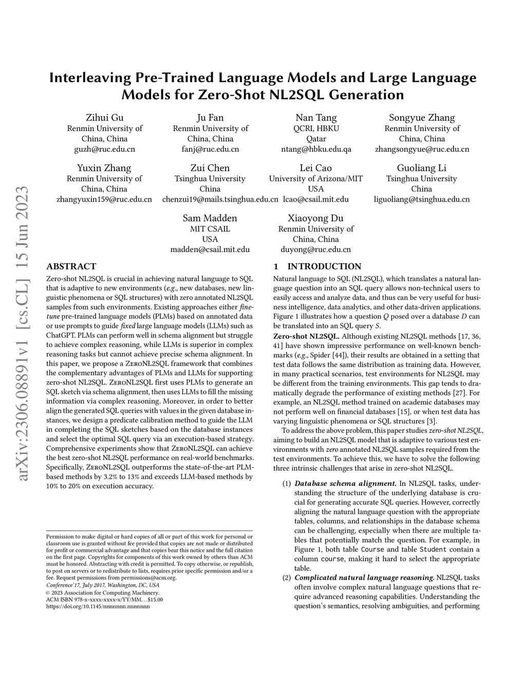 Zero-Shot NL2SQL Generation