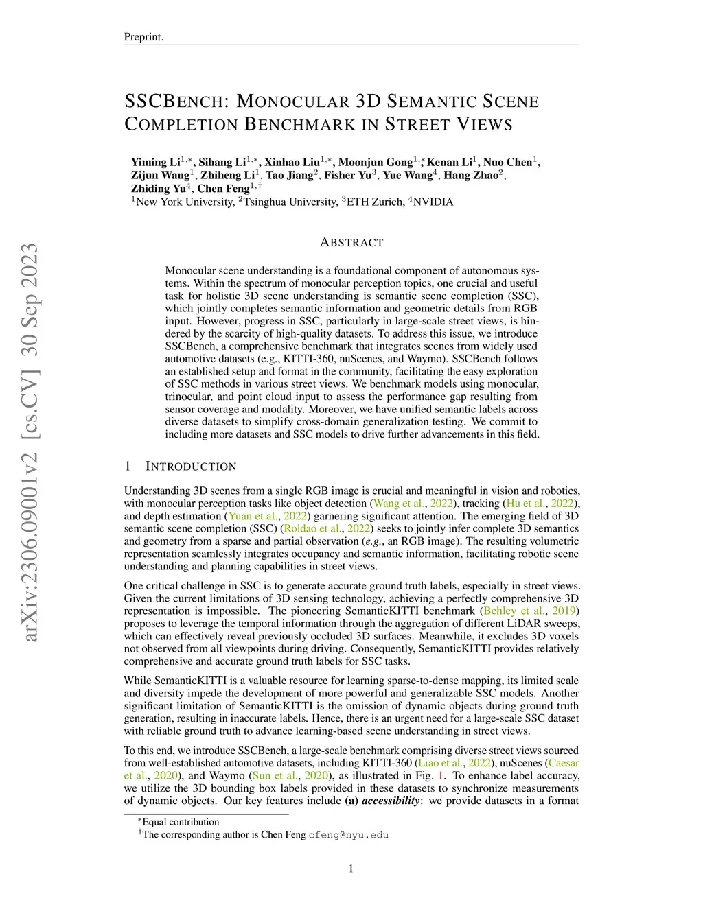 SSCBench: Monocular 3D Semantic Scene Completion Benchmark in Street