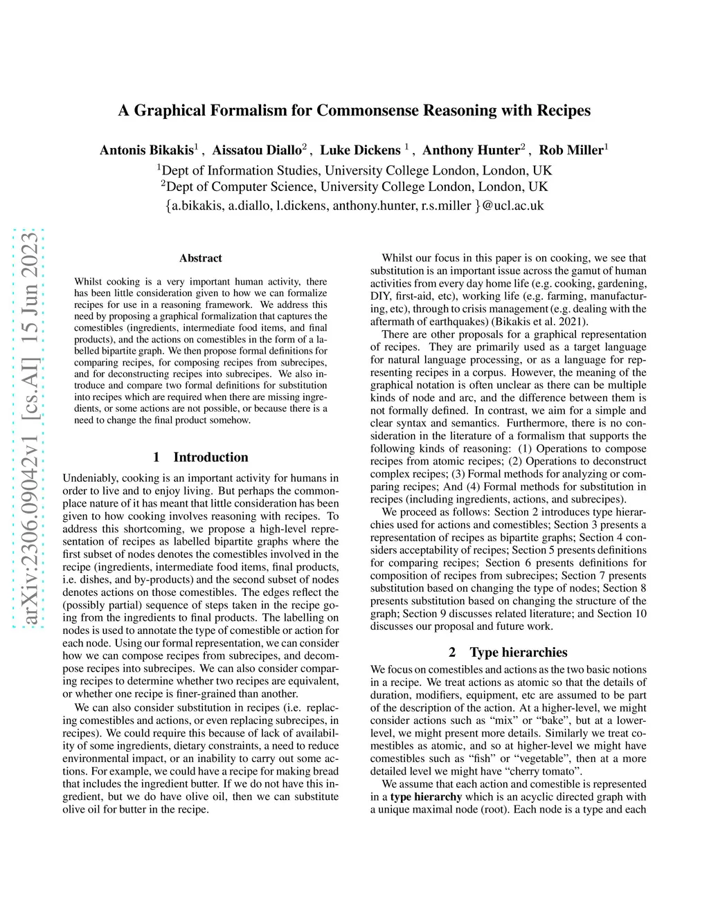 A Graphical Formalism for Commonsense Reasoning with Recipes