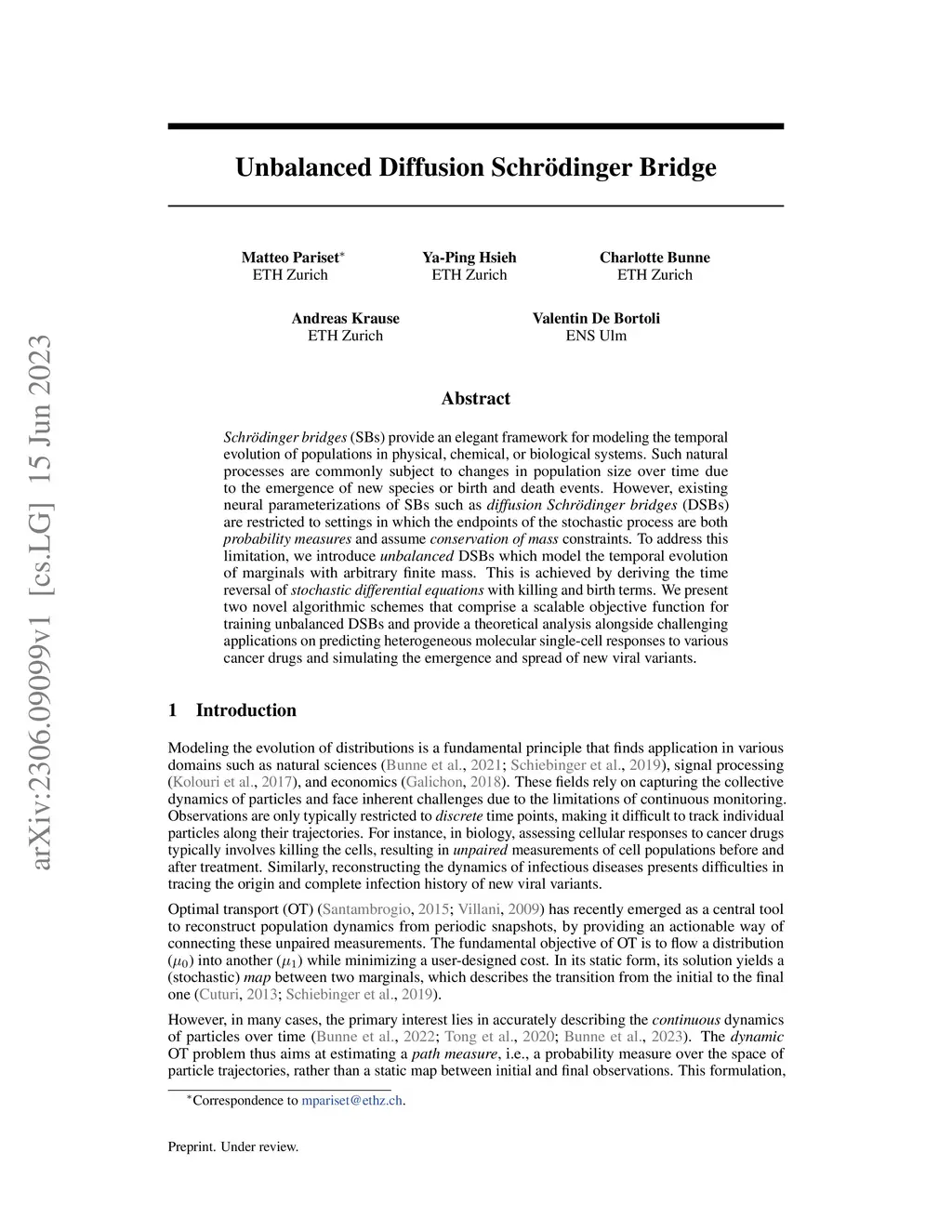 Schr\"odinger bridges (SBs) provide an elegant framework for modeling the temporal evolution of populations in physical, chemical, or biological systems. Such natural processes are commonly subject to changes in population size over time due to the emergence of new species or birth and death events. However, existing neural parameterizations of SBs such as diffusion Schr\"odinger bridges (DSBs) are restricted to settings in which the endpoints of the stochastic process are both probability measures and assume conservation of mass constraints. To address this limitation, we introduce unbalanced DSBs which model the temporal evolution of marginals with arbitrary finite mass. This is achieved by deriving the time reversal of stochastic differential equations with killing and birth terms. We present two novel algorithmic schemes that comprise a scalable objective function for training unbalanced DSBs and provide a theoretical analysis alongside challenging applications on predicting heterogeneous molecular single-cell responses to various cancer drugs and simulating the emergence and spread of new viral variants.